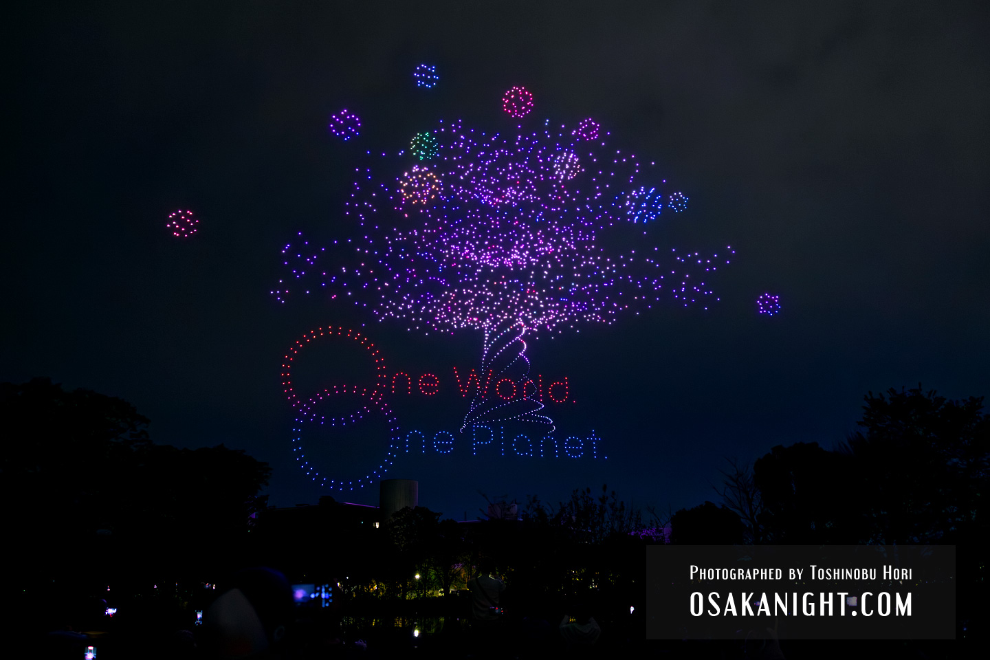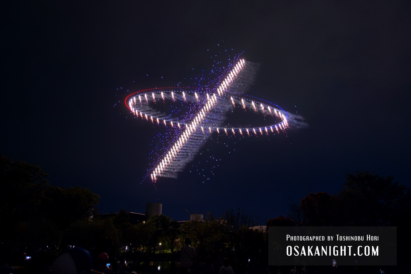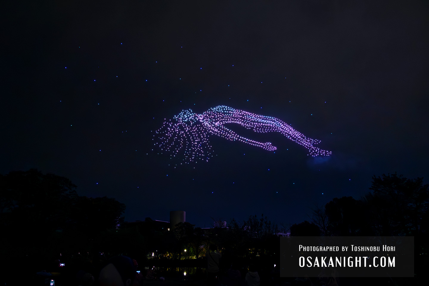 イベントプログラムの多くは抽選制のため、参加できる人数は限られていましたが、夜には万博期間中に多くの来場者を魅了したドローンショー「One World, One Planet.」が一夜限りの特別版として復活。万博最終日のみに出現したミャクミャクのドローン演出も行われるとのことで、これは絶対に見に行かなければと現地まで足を運んで観覧してきました。