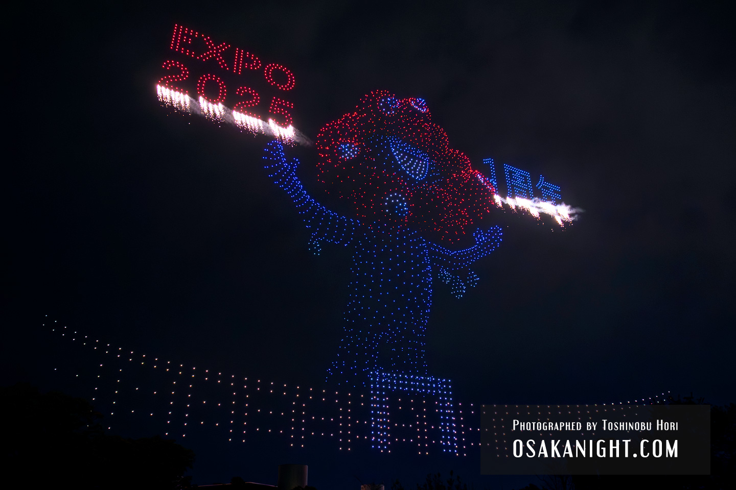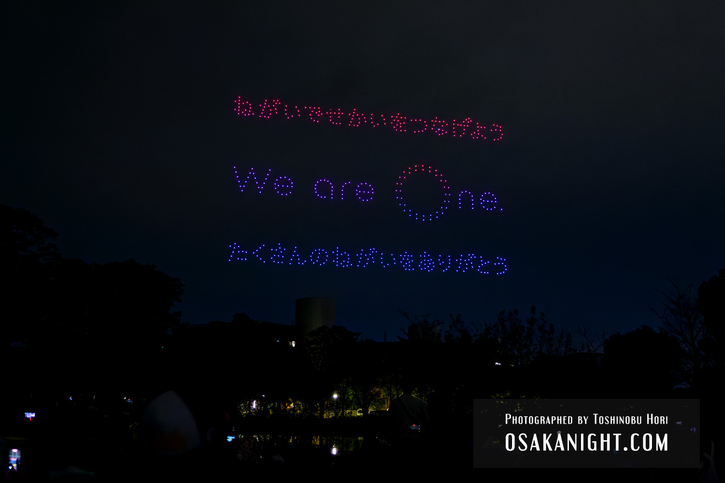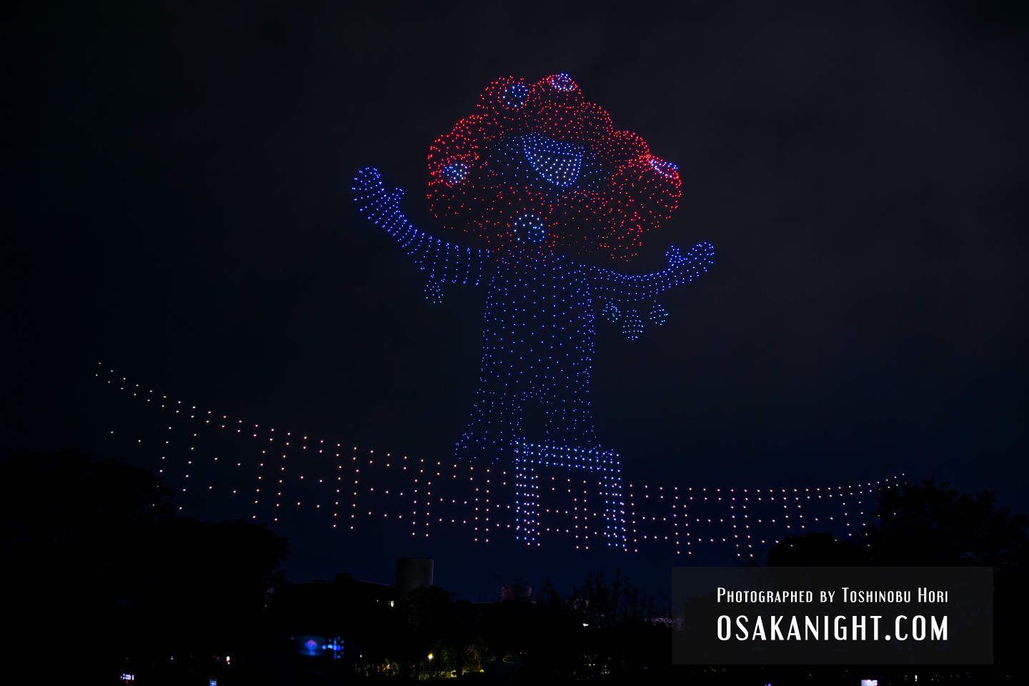 イベントプログラムの多くは抽選制のため、参加できる人数は限られていましたが、夜には万博期間中に多くの来場者を魅了したドローンショー「One World, One Planet.」が一夜限りの特別版として復活。万博最終日のみに出現したミャクミャクのドローン演出も行われるとのことで、これは絶対に見に行かなければと現地まで足を運んで観覧してきました。